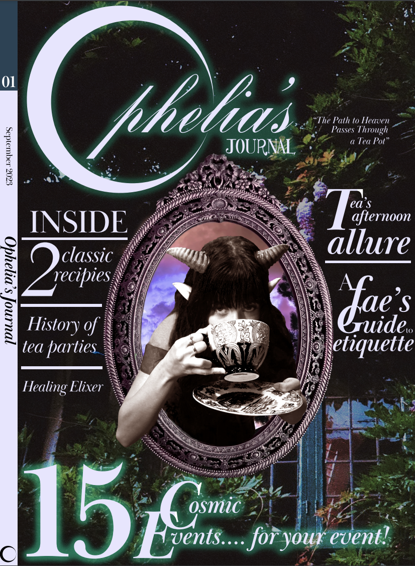 Ophelia's Journal is a magazine centered around the popular subculture of "Whimsy Goth." This subculture focuses on combining elements of nature, mindfulness practices, femininity, and superstition. All photography and art are 100% original works, created, drawn, painted, edited, and shot by me, and used to produce a completely original collection of articles and art to enjoy.